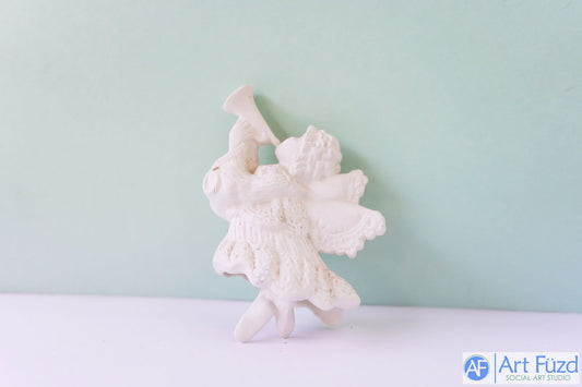 *Fancy Angel Facing Left Playing Trumpet Figurine with Unattached Legs ~ 5.75 x 2 x 4