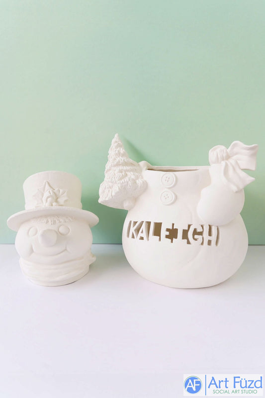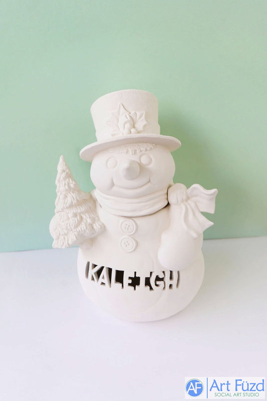 *Large Snowman Jar with "KALEIGH" First Name Cut-Out ~ 9.25 x 7.25 x 12.5