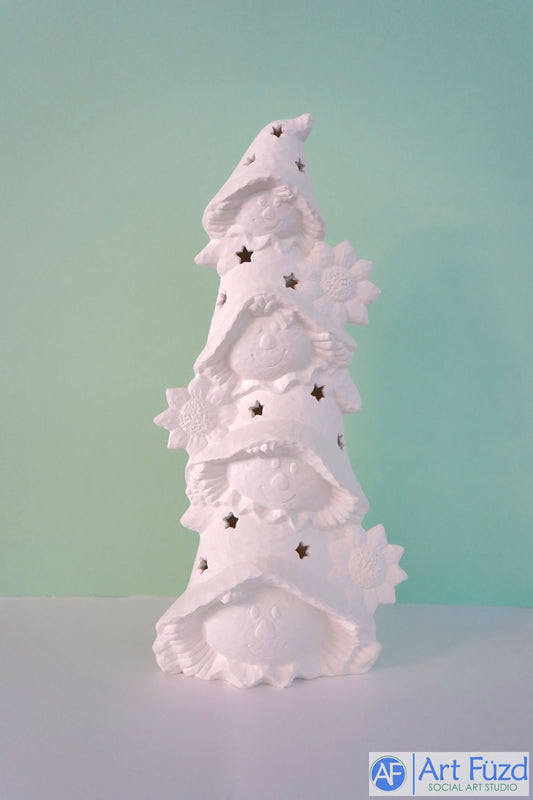 *Large Four Stacked Scarecrow Heads with Stars and Flowers ~ 8 x 4.75 x 17