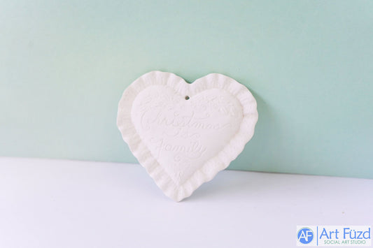 *Flat Ornate Heart Ornament "Christmas Is Family" ~ 4 x 0.5 x 3.75