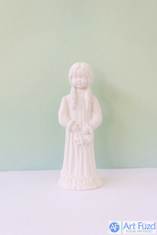 Girl with Pigtail Braids wearing Pajamas and holding Doll