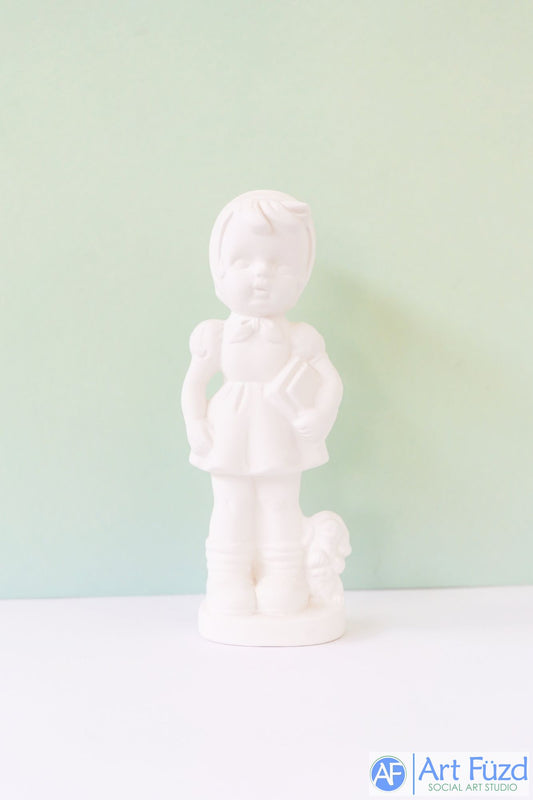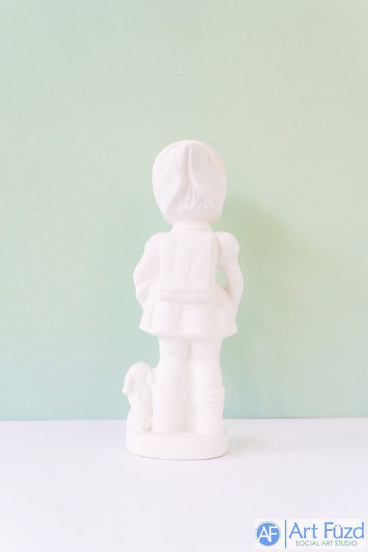 Medium Schoolgirl with Books walking with Dog ~ 2.5 x 7.5