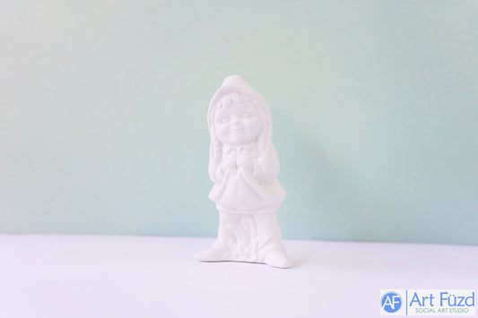 *Small Girl Gnome with Dress as Basket picking Flowers Figurine ~