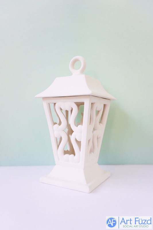 Large Four-Sided Lantern with Scroll Cut-Out Design and Loop Top ~ 4.75 x 4.75 x 11