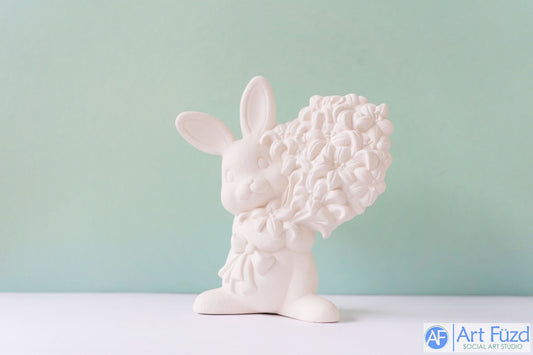 Medium Bunny holding Large Bouquet of Flowers ~ 6 x 3 x 7