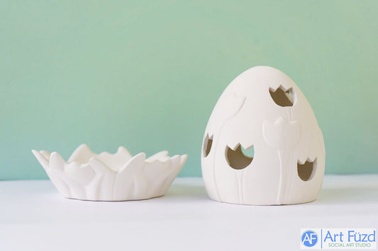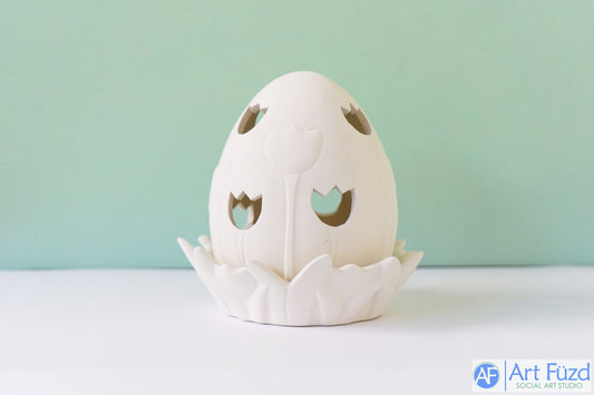 *Two Piece Egg Lantern with Tulip Flower Cut-Outs ~ 6.5 x 6.25 x 6