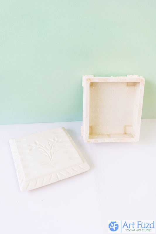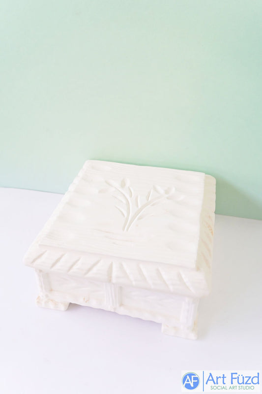 Large Carved Wood Box with Floral Detail on Lid (Pre-glazed inside) ~ 7 x 9 x 4