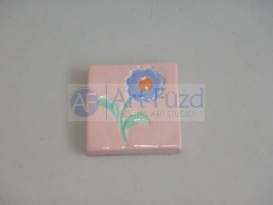 Small Flat Square Tile Hand Pressed Bisquie - Flower Design ~ 1.25 x 1.25