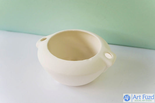 Large Round Three Footed Cauldron Bowl with Holed Handles ~ 8.5 x 7.5 x 3.75