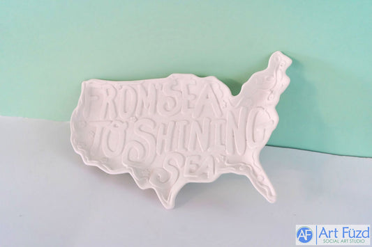 USA Map "Sea To Shining Sea" Decorative Plate or Serving Platter ~ 12.25 x 9.25 x 1