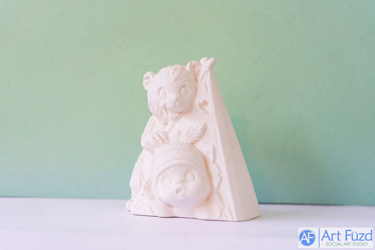 xxx-Cartoon Native American Boy and Bear Bank, inc. Stopper ~ 5 x 4 x 5.5