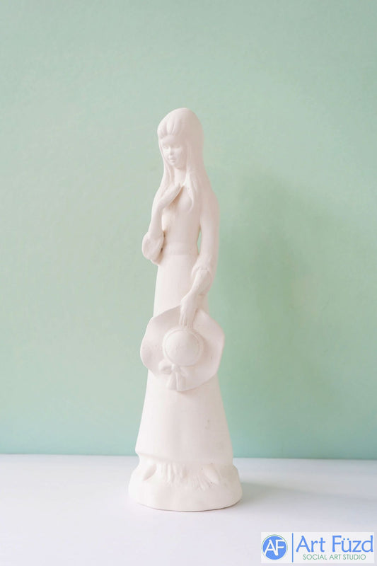 Vintage Tall Slim Woman Holding Hat Figurine ~ 4 x 4 x 12.5