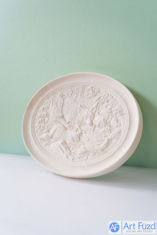 xxx-Large Oval Wall Plaque with Foxes or Raccoons in Meadow ~ 11.5 x 9.75 x 1
