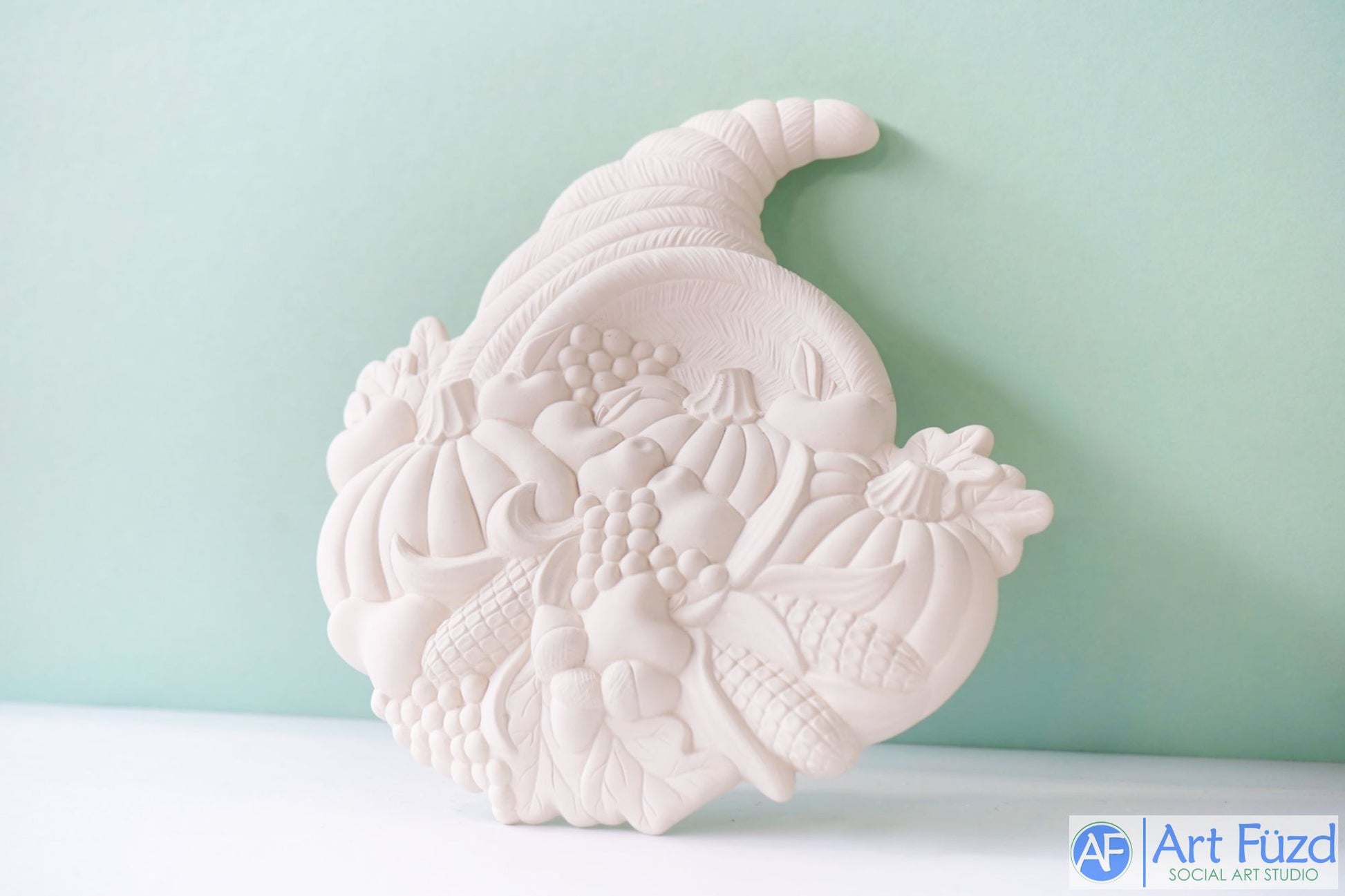 Cornucopia with Fruits and Veggies Wall Plaque ~ 9 x 9 x 1
