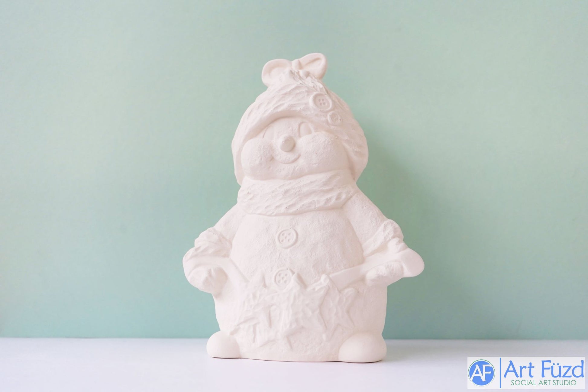 Large Textured Snowman holding Three-Flag Banner ~ 7 x 5 x 9.5