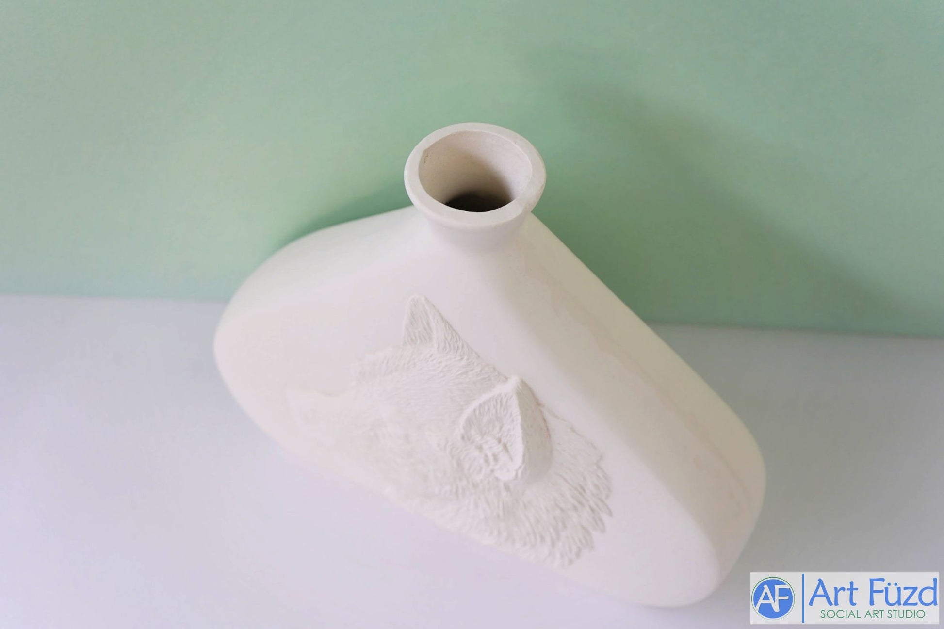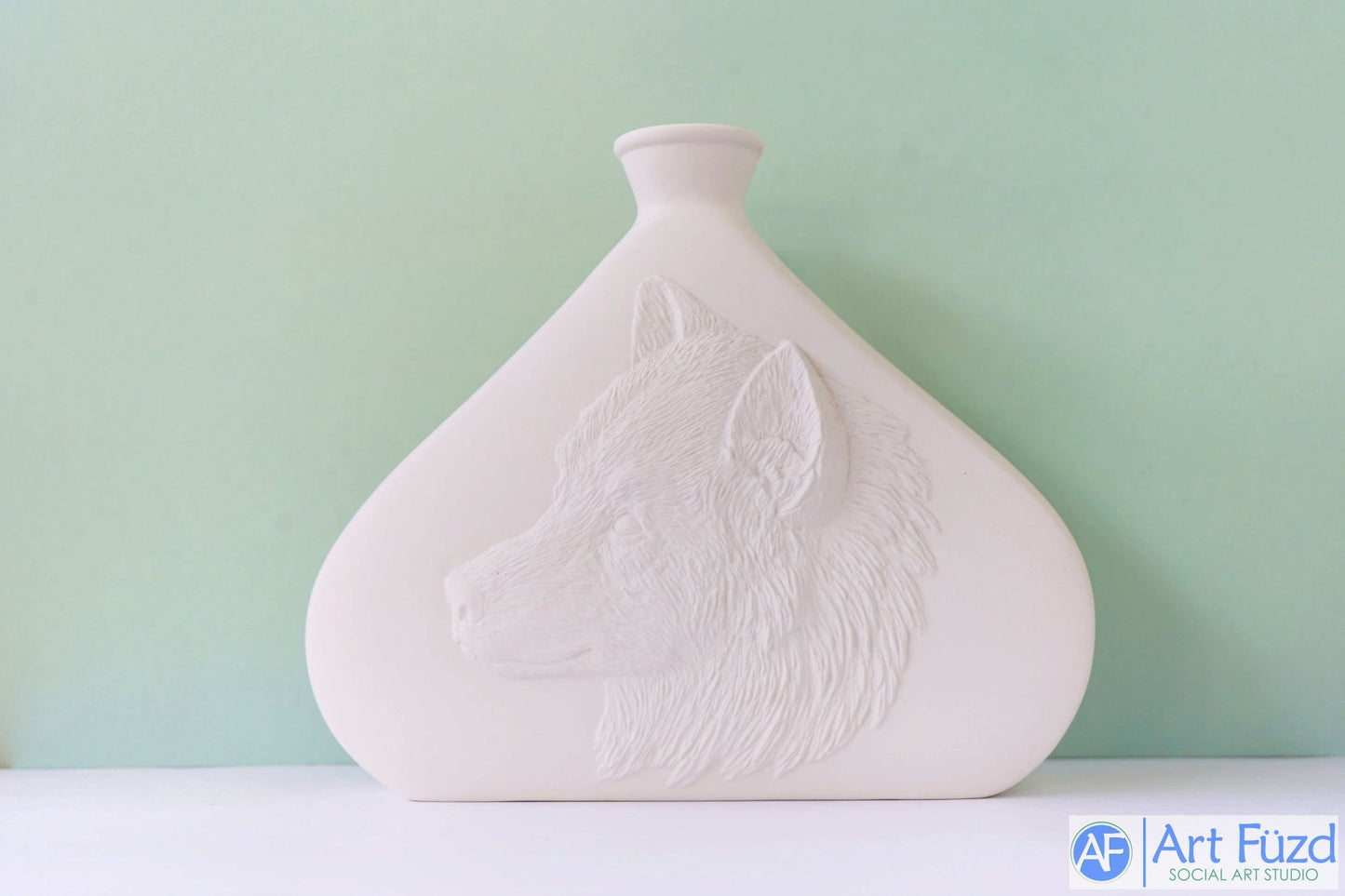 Large Triangular Vase with Wolf Head ~ 10.75 x 3.5 x 9