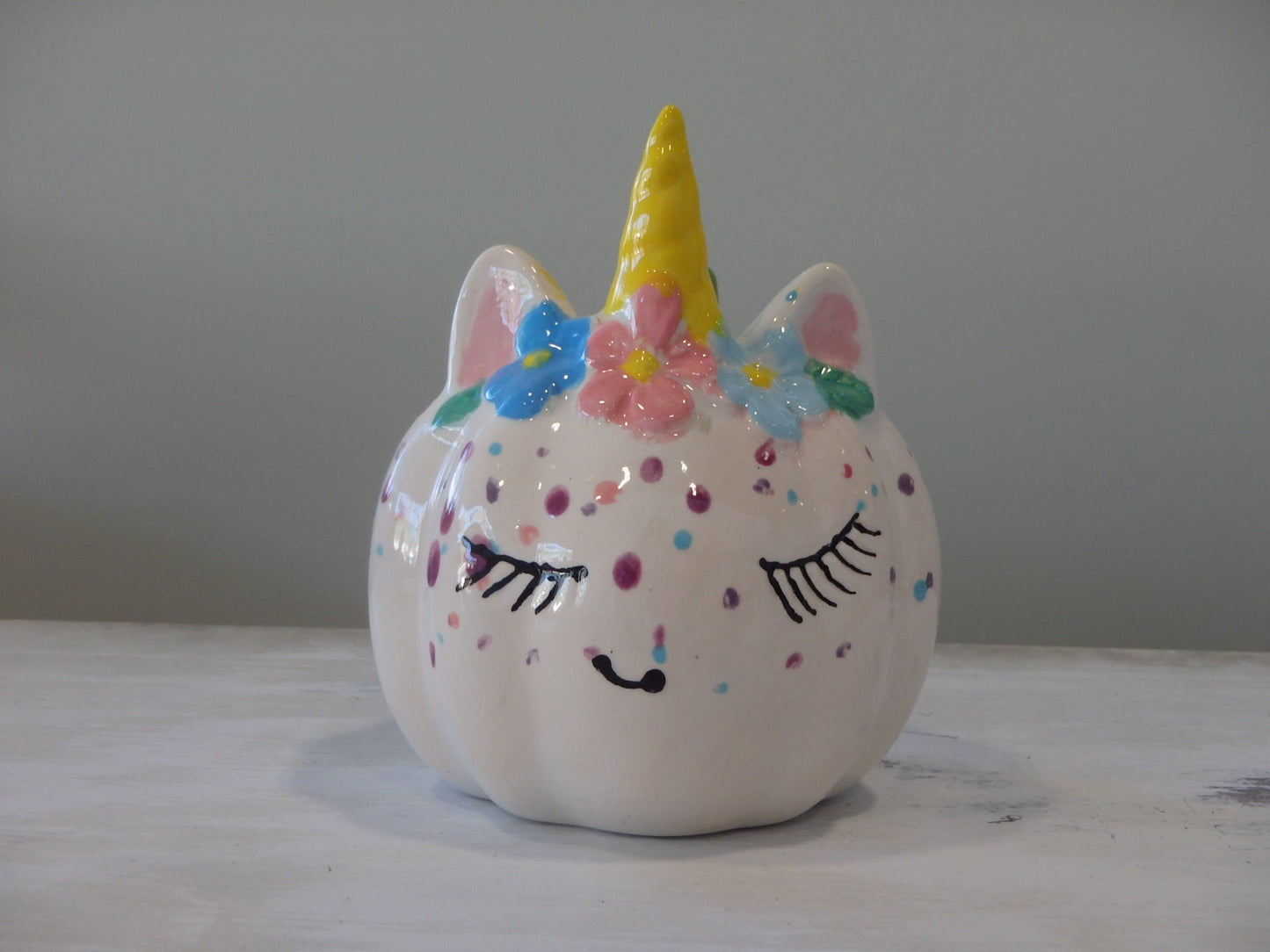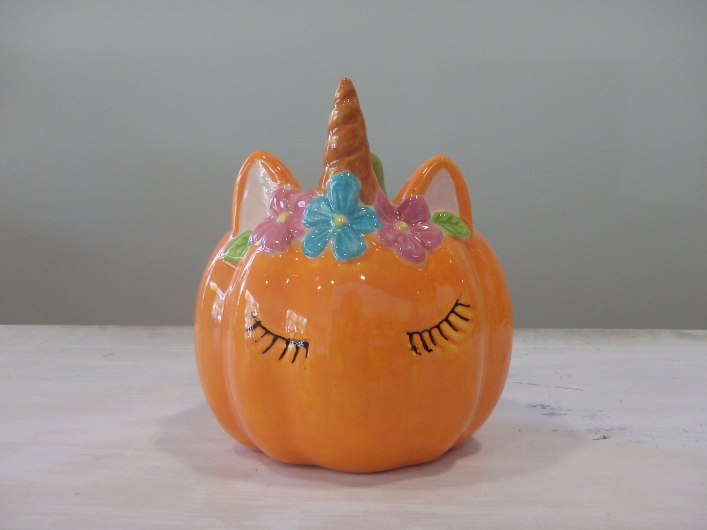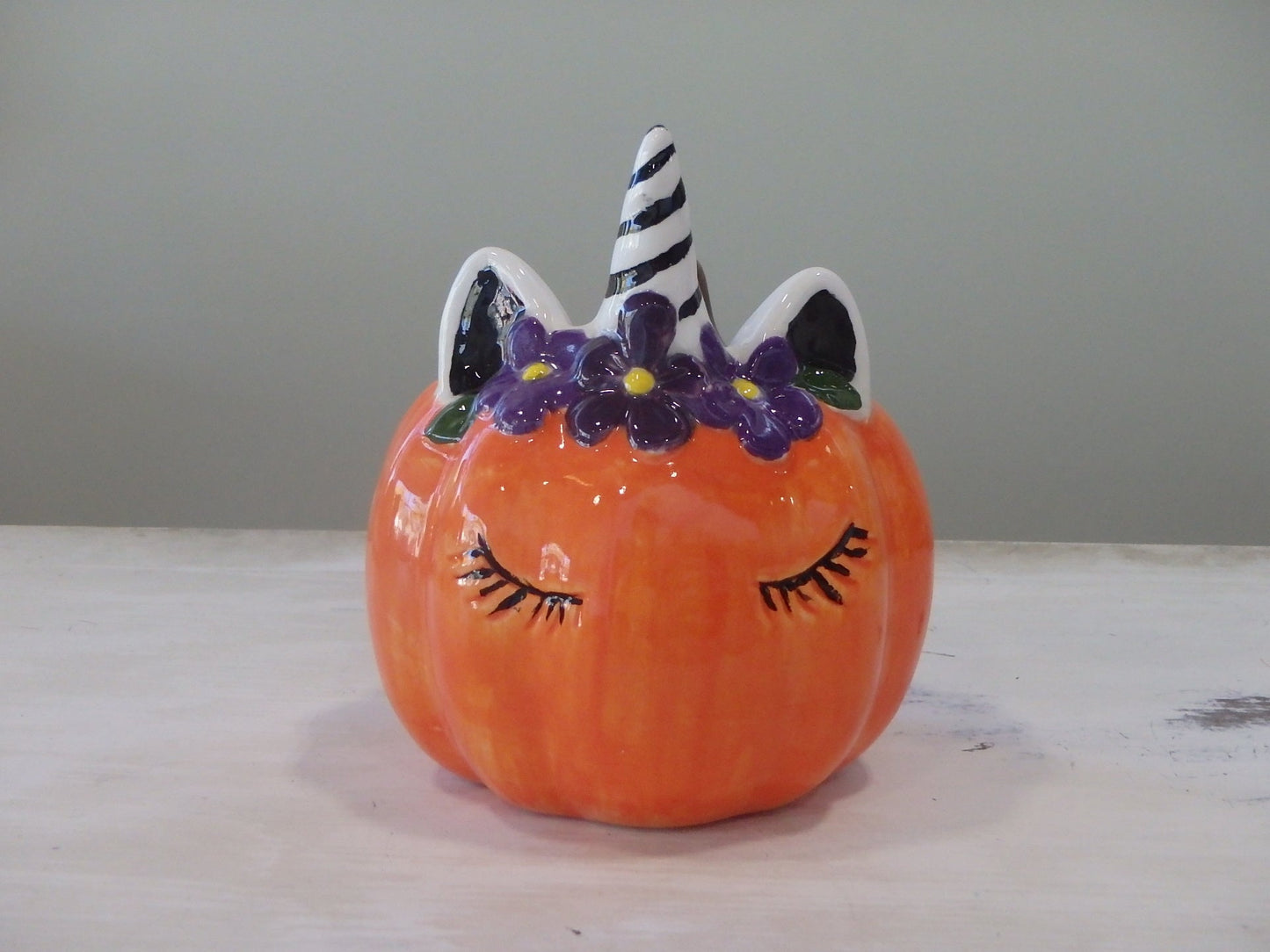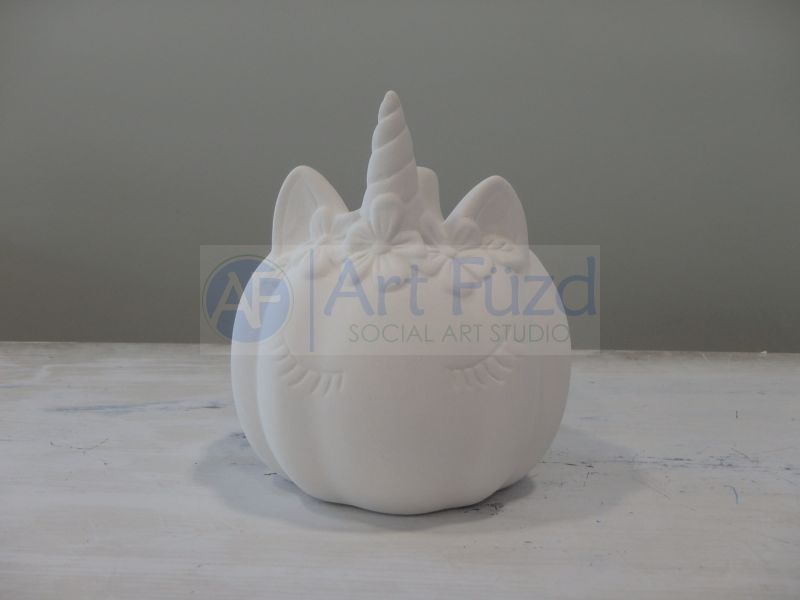 Unicorn Pumpkin with Eyelashes ~ 3.75 in. dia. x 4.25 in. high